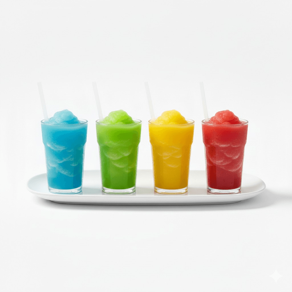 Icy Fruit Slushies ❄️🍓 "Our signature frozen slushies are packed with bold fruit flavors and a smooth icy texture. The ultimate way to beat the heat!"
