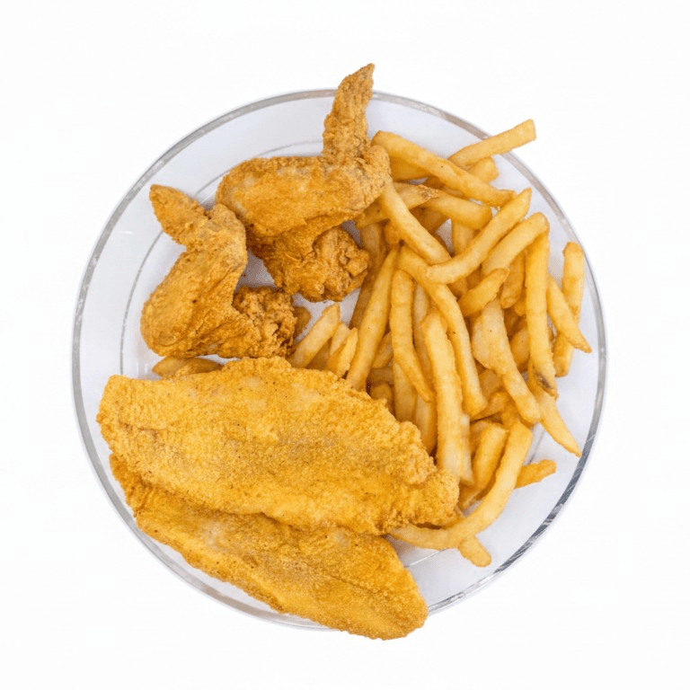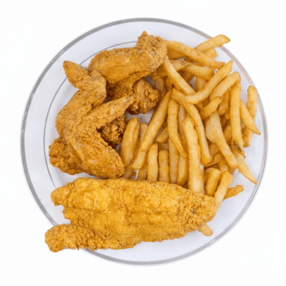 Your choice of fish: catfish fillet, tilapia, perch, perfectly seasoned wings and 4 crispy, golden catfish fillets. Served with a generous portion of large, golden fries, this meal is perfect for sharing and sure to satisfy everyone's cravings.