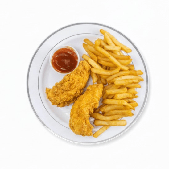 Get the best of both! 3 of our crunchy, bone-in wings paired with two hand-breaded chicken tenders fried to perfection. Accompanied by a generous mound of hot French fries.