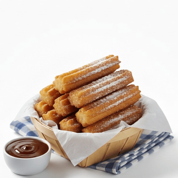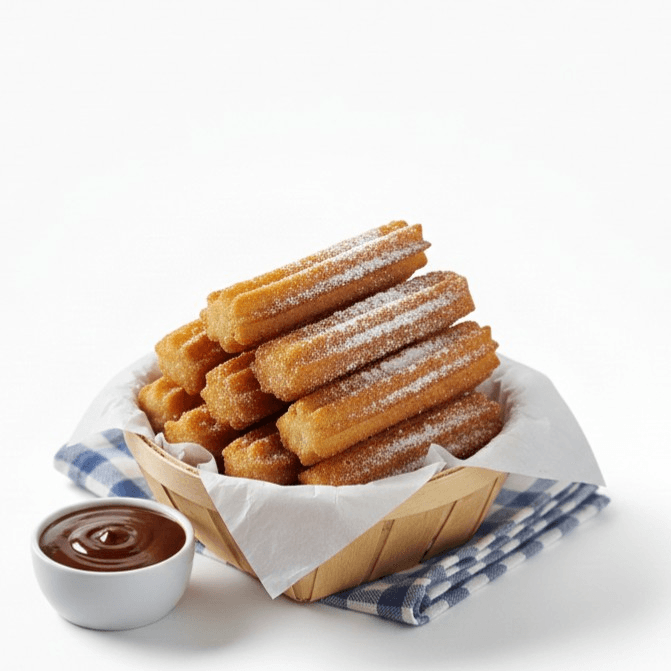 Classic Cinnamon Churros ✨🍫 "Golden-fried churros dusted with cinnamon sugar, served with a side of rich chocolate dipping sauce. Crispy, sweet, and pure happiness!"