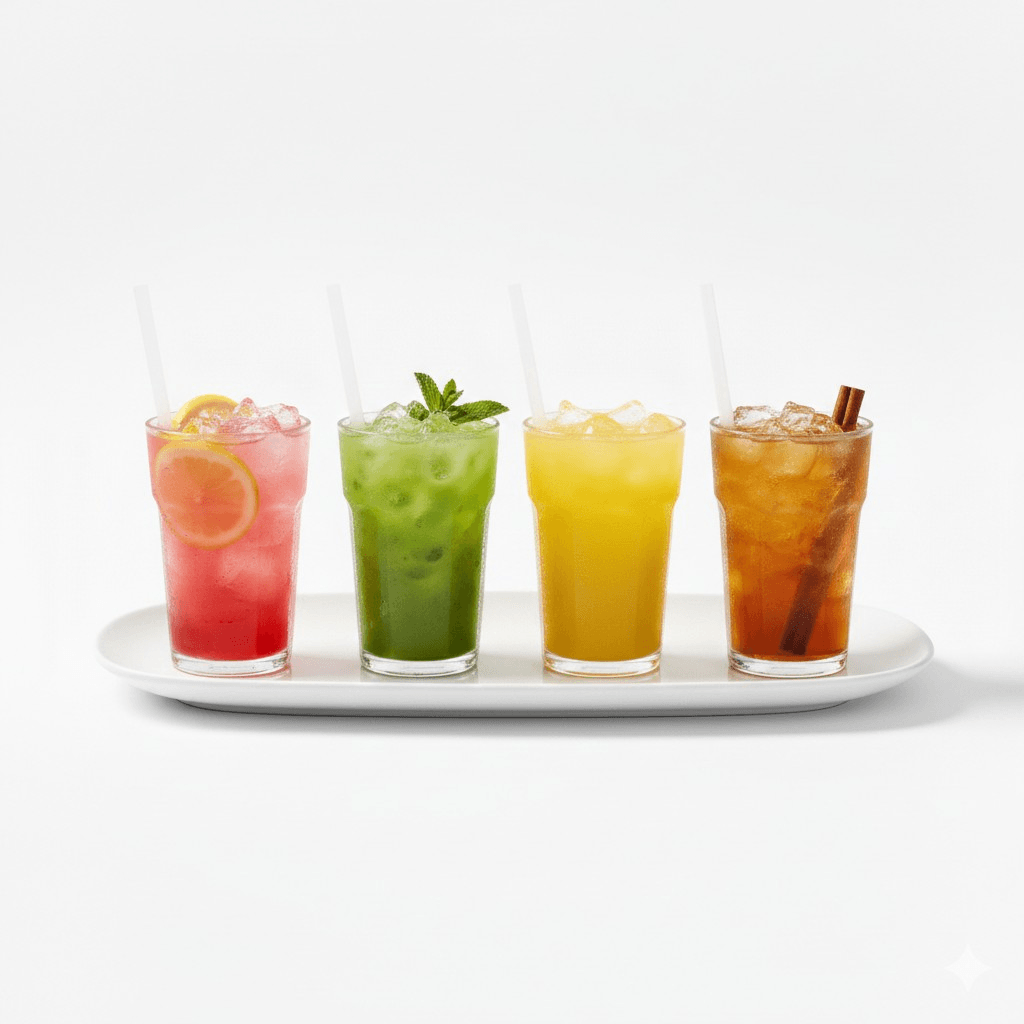 Premium Flavored Tea Selection 🍃🍋 "Our refreshing iced teas are infused with natural fruit flavors and botanicals. Crisp, clean, and perfectly balanced for a sophisticated chill."