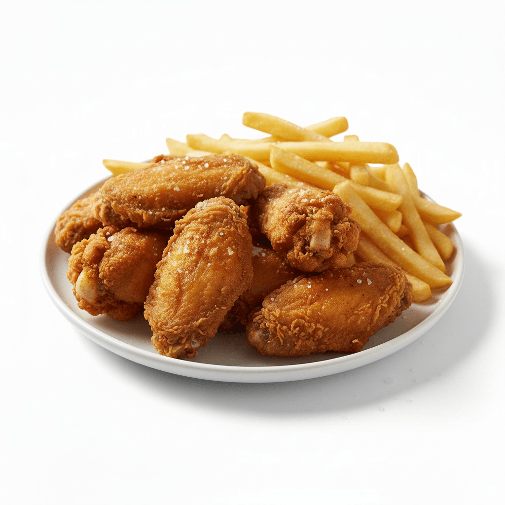 3 perfectly fried, crispy wings bursting with flavor. Served with a generous portion of golden fries and a refreshing drink of your choice, this meal is perfect for wing lovers and guaranteed to satisfy your cravings.
